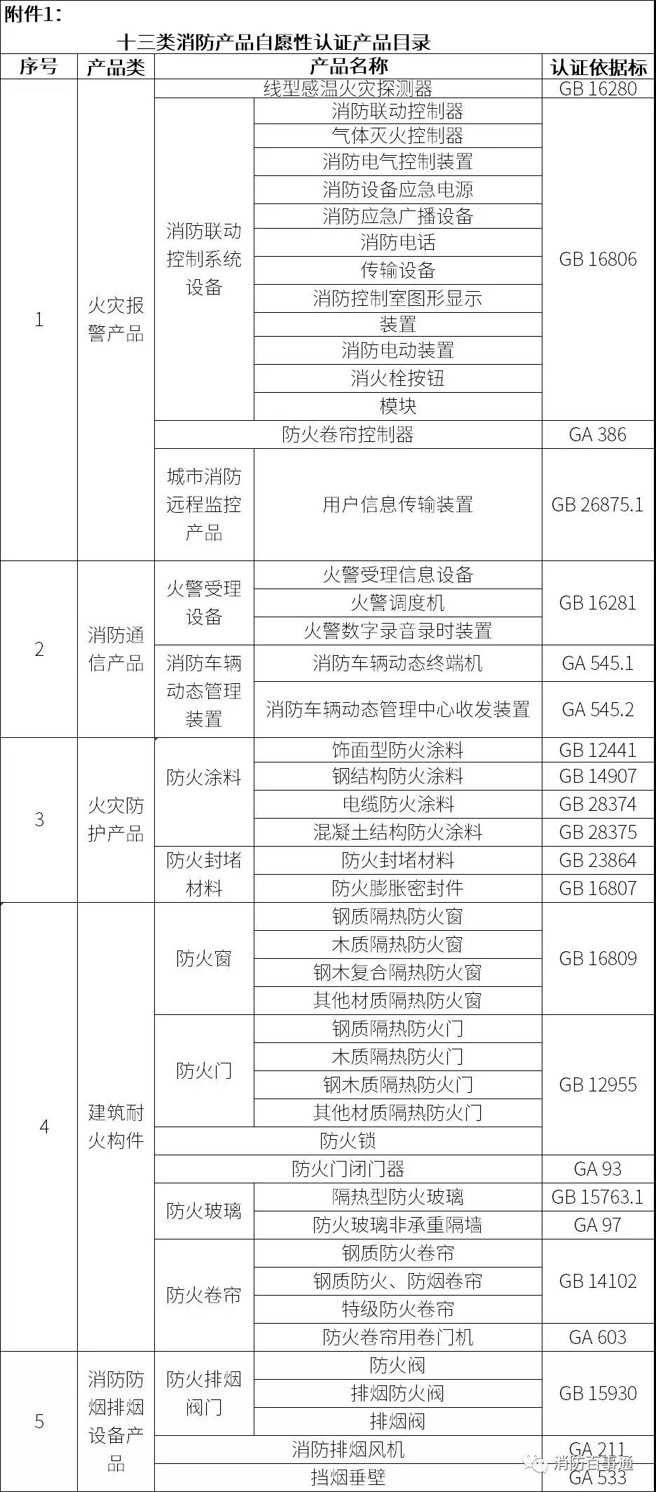 附件1:十三類消防產(chǎn)品自愿性認(rèn)證產(chǎn)品目錄