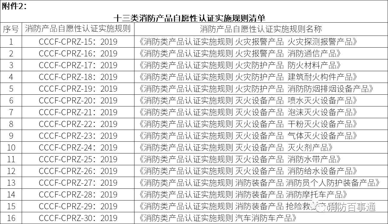 附件2:十三類消防產(chǎn)品自愿性認(rèn)證實施規(guī)則清單